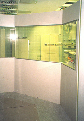 The design of our radiation protection workstation conforms to the current x-ray protection ordinance; manufacturer and Pb values are specified. The radiation protection window (leaded glass, type Med-X®) is ground, polished, and covered with float glass. If required, the radiation protection module can be removed and relocated without damage.